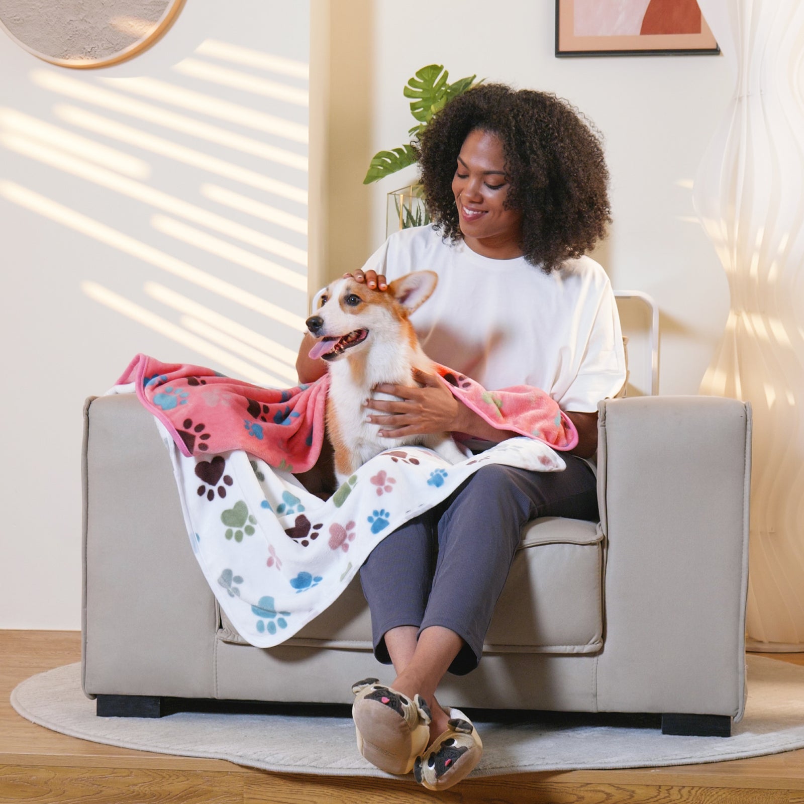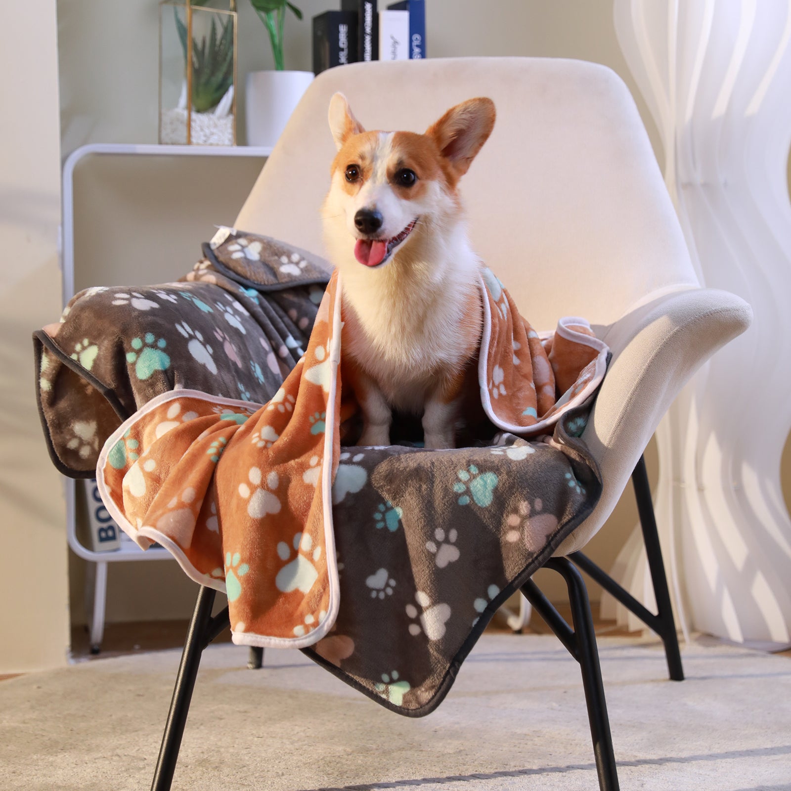 This Fleece Dog Blanket for Crate set, where paw prints dance on double-sided coral velvet!