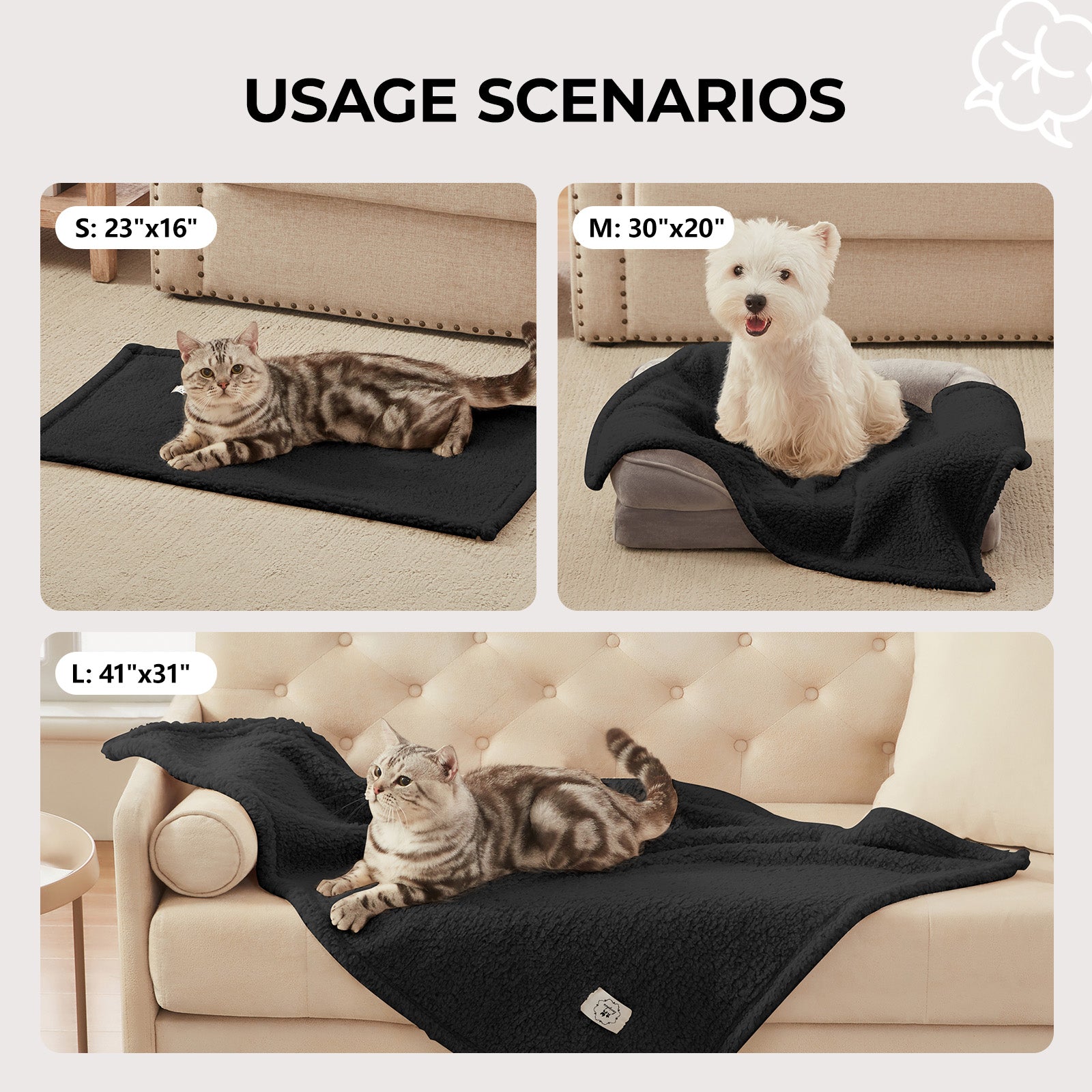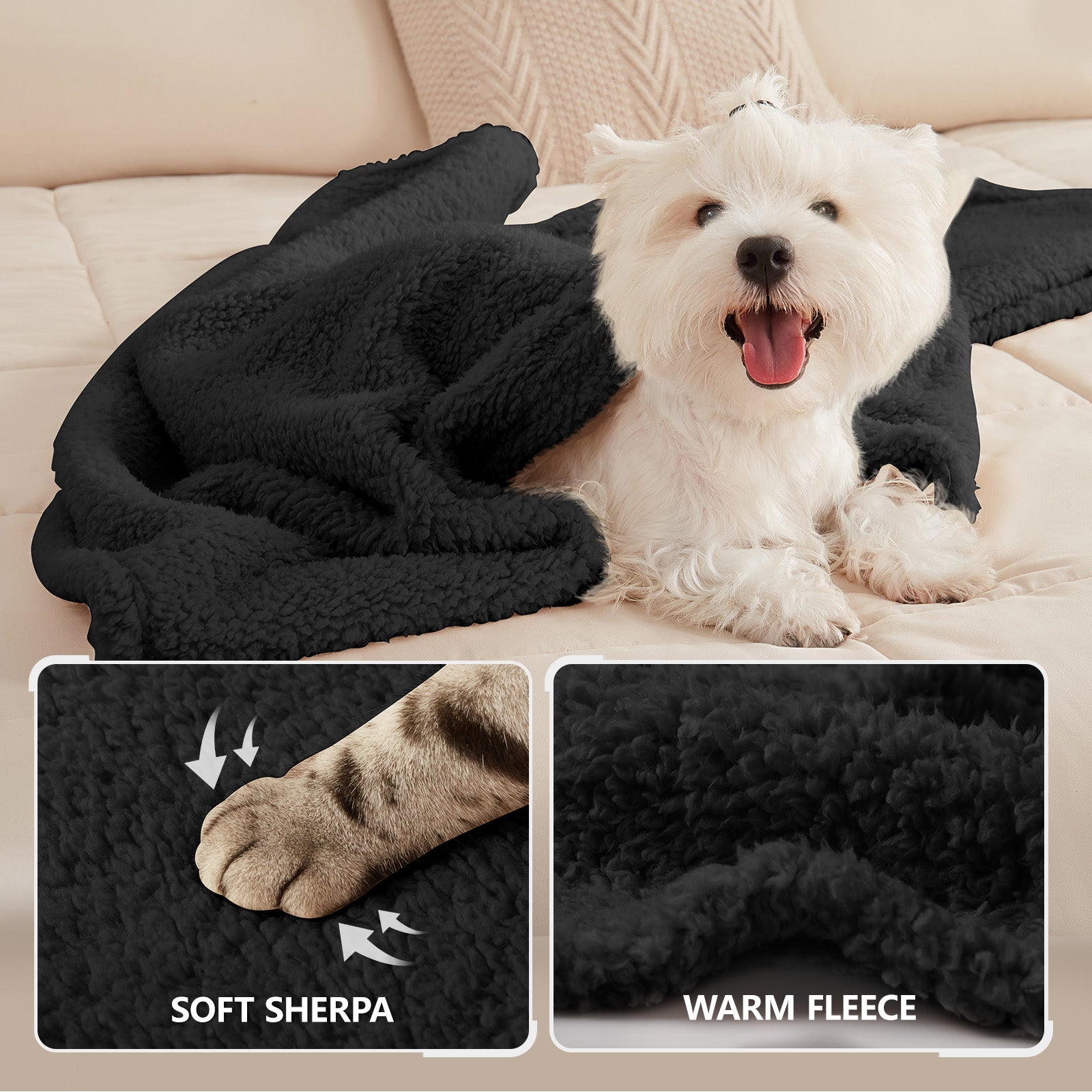 Soft Sherpa Dog Blanket for Dog Puppy Cat Black